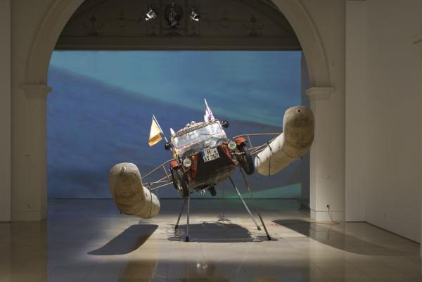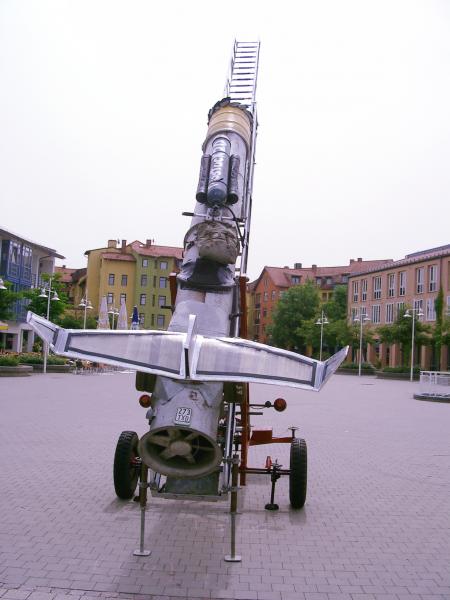 Die Materialcollagen von Christian Schnurer bestehen aus Fundstücken,  die, ihrem eigentlichen funktionalen Kontext entzogen, weiterbearbeitet und in neue Sinnzusammenhänge überführt werden. Unsere eigenen medialen Erfahrungen lassen diese Objekte zu täuschend echten Bombenattrappen oder zur Abschussrampe für eine auf ihren Start wartende Rakete werden. Er untersucht dabei kritisch männliche Attitüden, Eigenarten und Prägungen aus seiner persönlichen und unserer kollektiven Geschichte an der Grenze des politisch Korrekten. Dabei unterlaufen die recycelten Geräte durch ihr antiquiertes Aussehen bewusst jeden Anflug von aufkommender Technikgläubigkeit und verleihen den Unternehmungen valentineske Nebeneffekte. Klicken Sie auf die Bilder, um sie zu vergrößern.